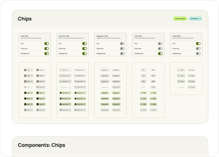 Also included in this free Figma Material You and Android 13 design system are thousands of components for app bars, badges, buttons, cards, chips, switches, checkboxes, lists, dividers, menus, navigation, sliders, tabs, text fields and toolbars. Plus there's a color scheme and a guide on the typography of the Material You Google design system.