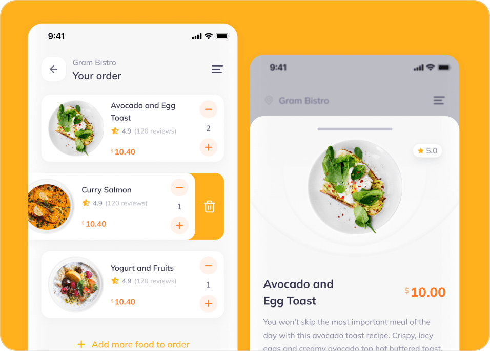 There's a lot of Uber Eats style free Figma templates available but this app is interesting as it's focus is just on the actual menu system and payment, so it's much more focused on the action of browse and purchase, not on location tracking or tipping or any of the other fluff that comes with those kinds of free templates.